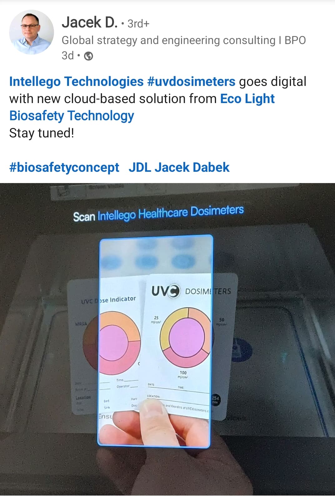 Ecolight biosafety on merkitty intellegon yhteistyökumppaniksi heidän sivuillaan. Linkedin postauksessa julkistivat pilvipohjaista käyttöä/skannausta uvdosimetereille. Tulevaisuudessa tulee varmasti lisätietoja mikä merkitys intellegolle tällä ratkaisulla on.