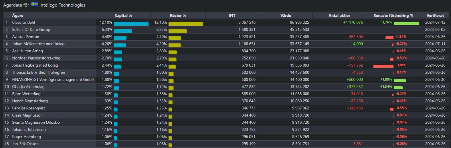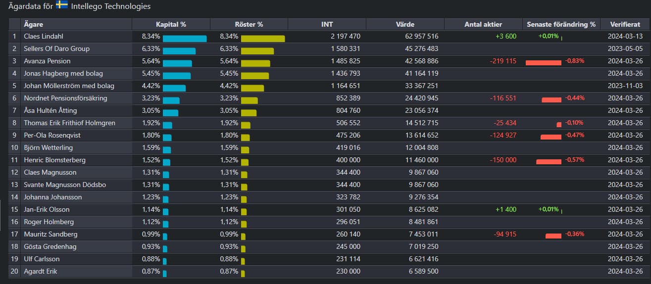 Intellegon discord oli oheinen omistajalista. Ilmeisesti toukokuulta. Jonkin verran keventelyjä 20 suurimman joukossa.