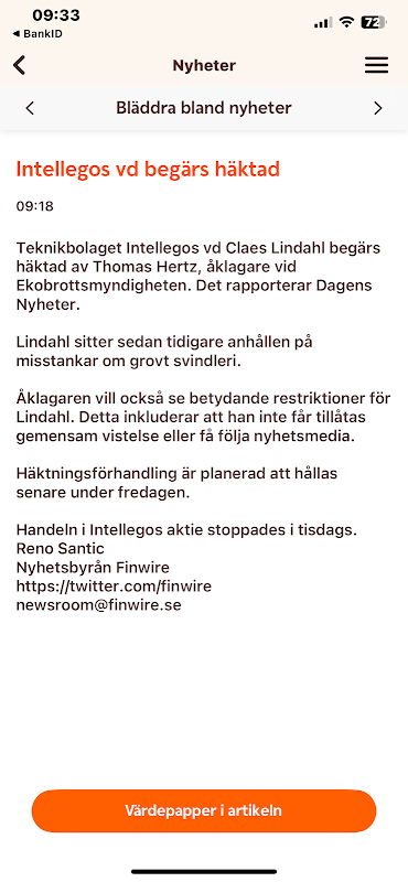 Eihän nuo liity Intellegoon oletettavasti mitenkään vaikkei yhtiöiden nimiä olekaan kerrottu? Ja noissa tuon sivun tapauksissa monessa kyseessä sisäpiirin kaupankäynti? Intellegon toimarin juttu on tuoreena sivulla 1, joten sivun 4. Jutut ovat jo vanhoja.