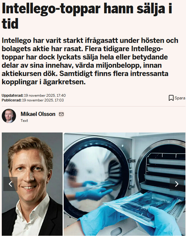 Googling “Mats-Ola Andersson Intellego” brings up a news article published by Dagens industri on 19.11., according to which Intellego’s management managed to sell in time.