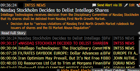 It has about 18,000 shareholders whose holdings are, at least for the moment, worthless. According to the newspaper Dagens industri Intellego is now looking for an alternative marketplace for the share.