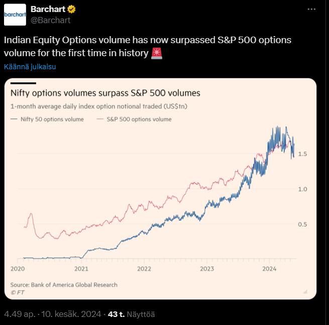 Intiassa osakemarkkinat ovat tällä hetkellä kuumina. ![]()