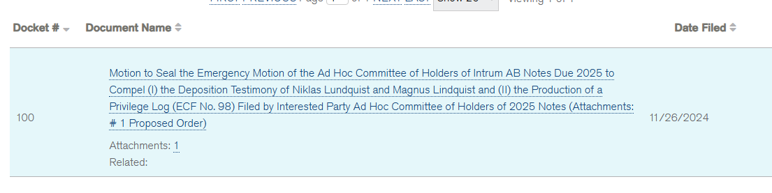 Kroll Intrumin sivulla näkyy uusi dokkari, jossa ADHOC-tiimi vaati saada nähdä joitakin sinetöityjä asiakirjoja ja tuomari hyväksyi niiden paljastamisen asian käsittelyä varten (ne salataan julkisuudelta kuitenkin). Nämä liittyvät Magnus Niklas Lundquistin ja Magnus Lindquistin todistajanlausuntoihin.