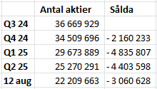 De hade dock bara 25+ miljoner aktier den 31.7. Om 8 miljoner av dessa hade sålts skulle man hamna någonstans runt 17 miljoner.