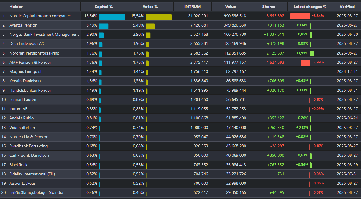 Det låter hittills som ett ganska osannolikt fall, men det är säkert ett bra tips att hålla ett öga på ägarlistan och rörelserna. Tydligen har Nordic Capital inte sålt mer denna månad eftersom de inte har flaggat, utan det finns någon annan anledning/flera bakom den fortsatta pressen på kursen.