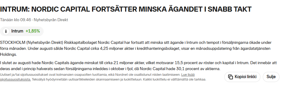 Som en rolig detalj på Nordic Capitals sidor står det att de fortfarande avser att stödja Intrum att bli skuldfria (kanske lite föråldrad information eller fortfarande en äkta strategi).