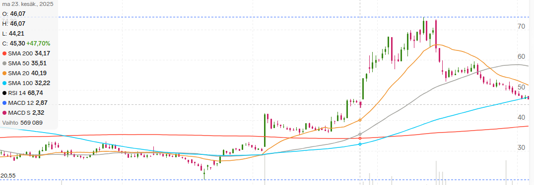 Edit: @Odetus jag har inte sålt något, och inte ens lättat på 70 kr, trots att sunt förnuft uppmanade till det efter den kraftiga uppgången. Diamond hands blev ganska dyrt i pappersvinster, när positionen är 30000 aktier ![]()
