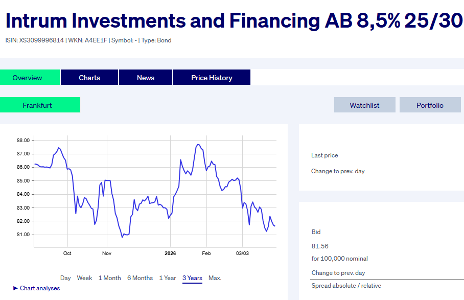 Om man målar upp det värsta scenariot för försommaren, får Intrum inte godkänt för affären och omfinansieringen försenas på grund av att krisen i Mellanöstern har stängt av lånekranarna. Intrum har å andra sidan tid att förhandla om dessa fram till 2027, men om dessa inte kan avslutas under H1 2026 (som Intrum själv har angett som uppskattad tidpunkt), kommer ett företag som lider av bristande förtroende knappast att förtjäna mer förtroende.