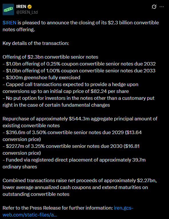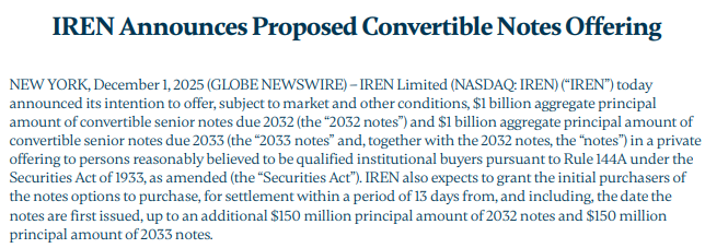 Edit: Wait a minute .. old CNs are not being bought back for themselves, but are offered to certain institutional buyers (Iren) on better terms / swapped for shares. It looks like this is a 2MRD+ capital raise.