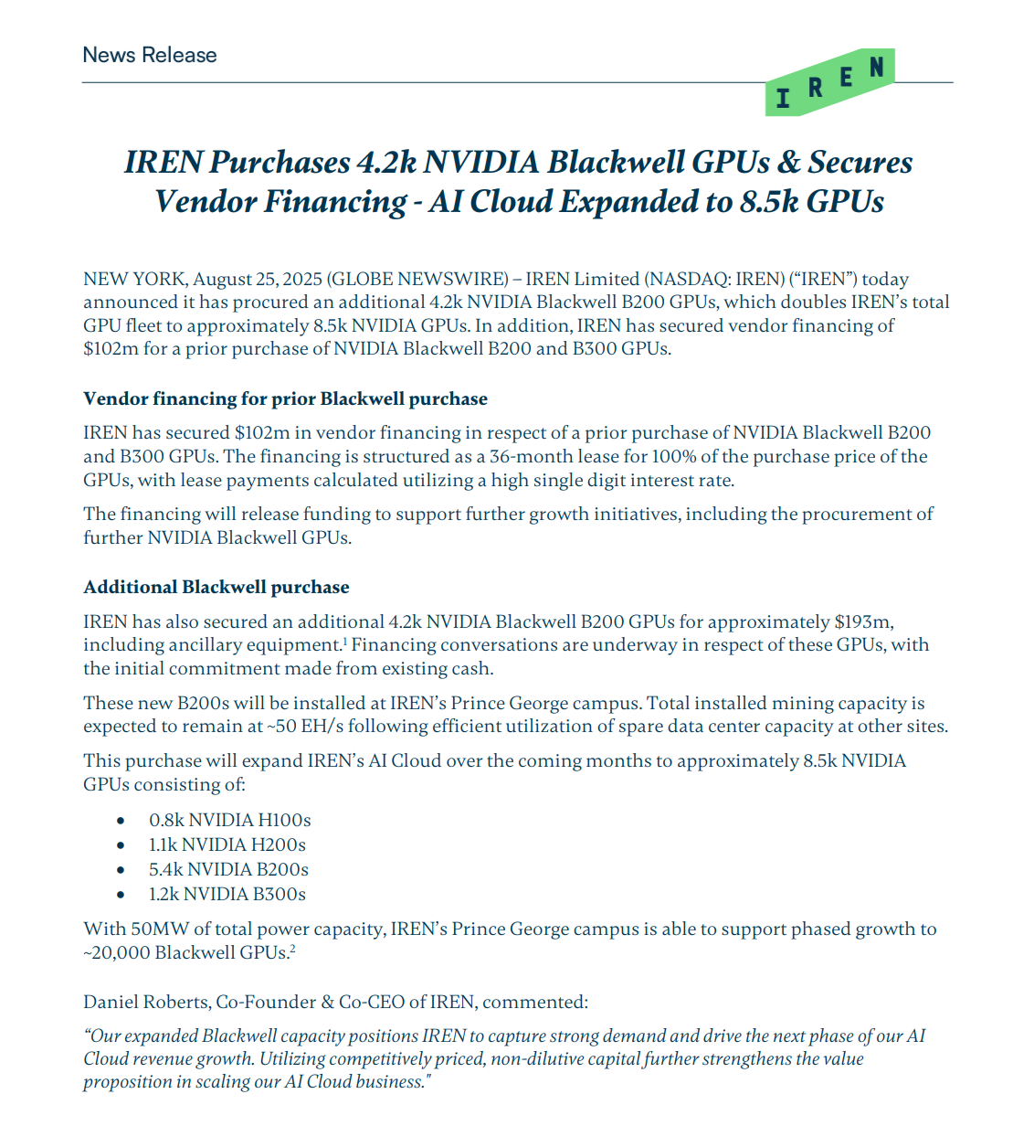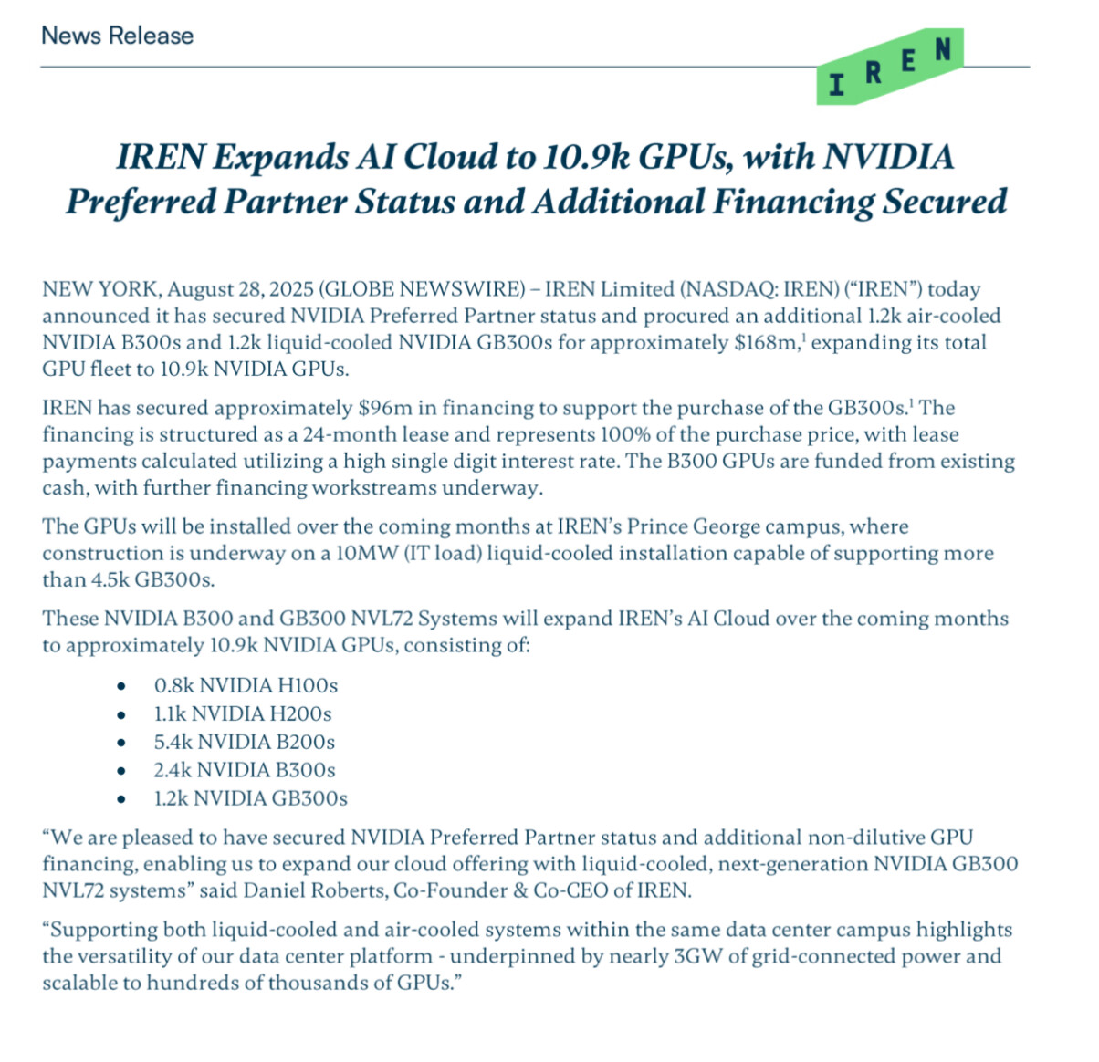 Nebius ohjeistanee pilvipalvelun myyntiä ja Iren ’bare metal’ myyntiä. Tästä oli juttua tulospuhelussa. Sofistikoituneet asiakkaat haluavat tuoda oma software-stäkkinsä tiettyihin gpu:hin (ei mikään pilvi).