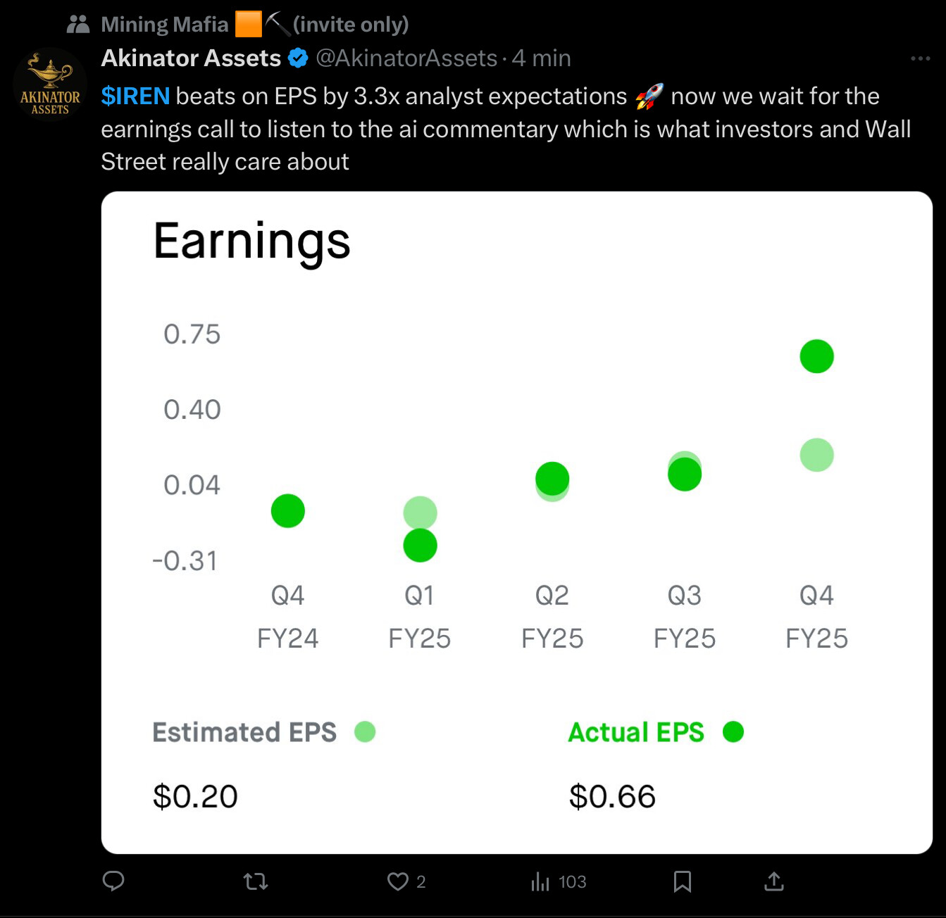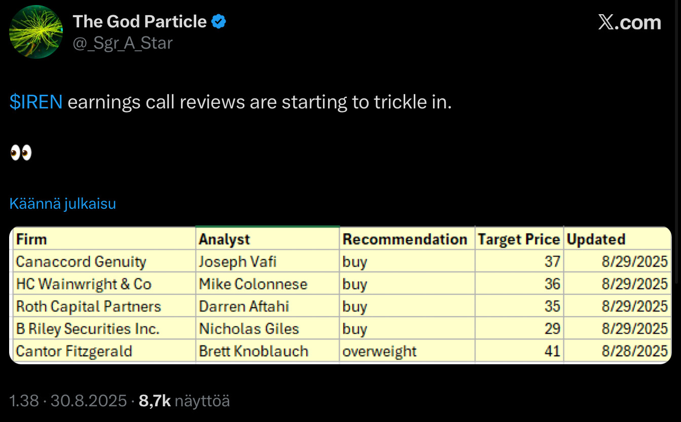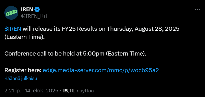 En ole kovinkaan tarkasti yhtiöön perehtynyt, mutta aloin tonkimaan lukuja läpi, jotta ymmärtäisi paremmin miksi tämän yhtiön ympärillä on näin kova pöhinä. Eniten ihmetystä aiheuttanut vertailut Nebiukseen ja miten IREN on ilmeisesti parempi sijoituskohde… Itse en tätä vain näe (ainakaan vielä). Korjatkaa ihmeessä.