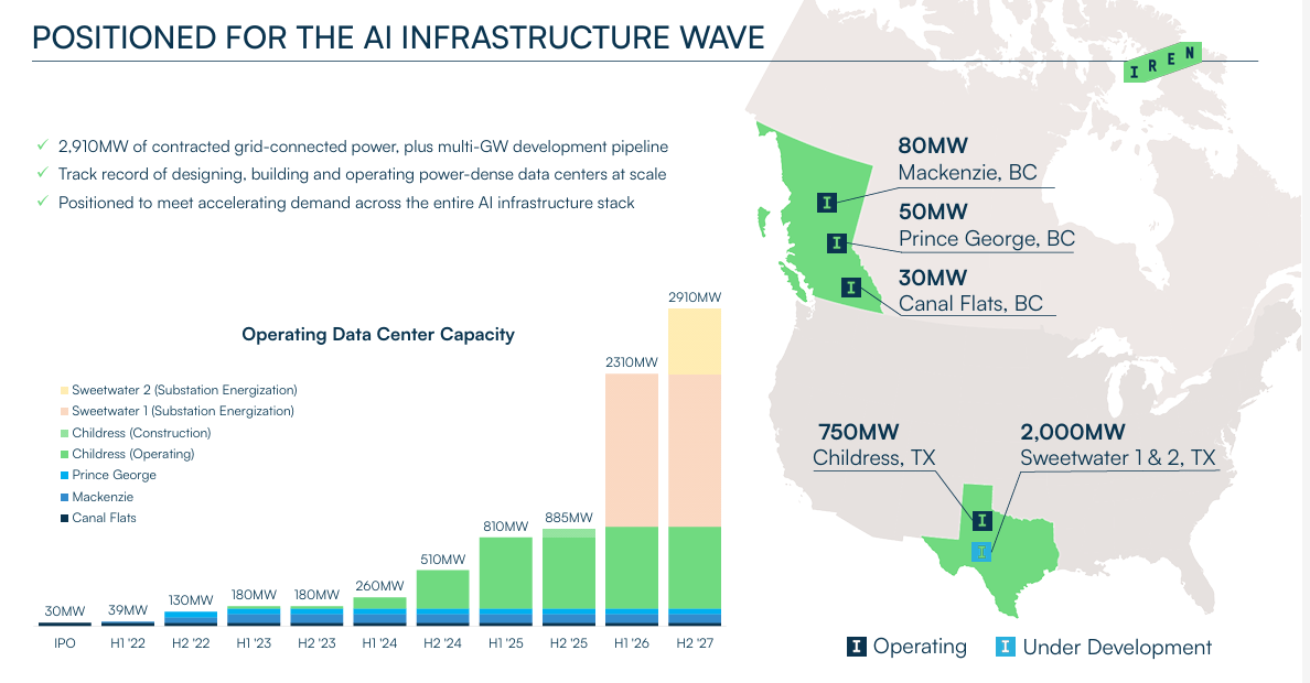 IREN is developing a cutting-edge 75MW liquid-cooled AI data center, named Horizon 1, at its Childress site in Texas.