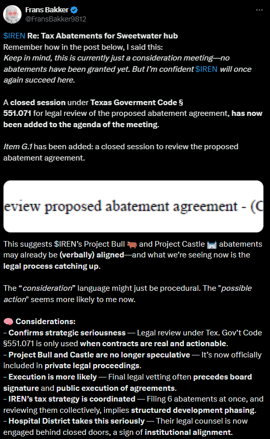 Olipa tulos! Luottamus johtoon kasvaa ja osakkeen uudelleenarvostus louhijasta datakeskusinfraan saa todennäköisesti jatkoa. Tämän kanssa täytyy kuitenkin pitää maltti mukana ja ymmärtää, että riskejä on aina piilossa, vaikka niitä ei aina näkisikään. Silti on sanottava, että potentiaali on edelleen erittäin vahva, jos verrataan alan verrokkeihin, yhtiön ja johdon laatuun sekä tuleviin hankkeisiin. Moninkertaistuminen kuulostaa hurjalta, mutta kun laskelmat tekee kerta toisensa jälkeen, ei se ole lainkaan mahdoton ja vieläpä suhteellisen lyhyessä ajassa. Rahoitus- ja diluutioriskikin pienenee, jos bitcoinin hinta pysyy korkealla ja kassavirtaa alkaa tulla useammasta tukijalasta. Hankkeita valmistuu hyvää tahtia ja tarina on kuitenkin vielä alkuvaiheessa.