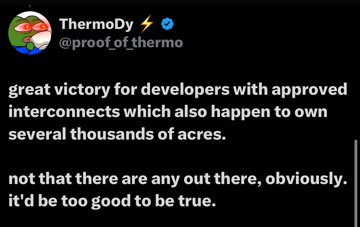 One more - when asked generally about others’ ‘pipelines’ (megawatts etc.) Dan replied ‘pipeline is word for a massive spreadsheet of “things we don’t have”’