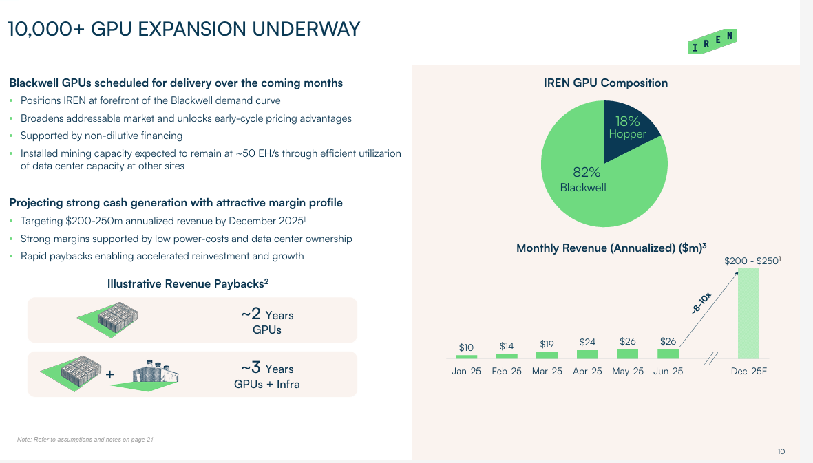 - If IREN can weather an initial downturn by leveraging its cash reserves and Bitcoin mining cash flow, its high margins could position it to capitalize on a rebound in AI demand.