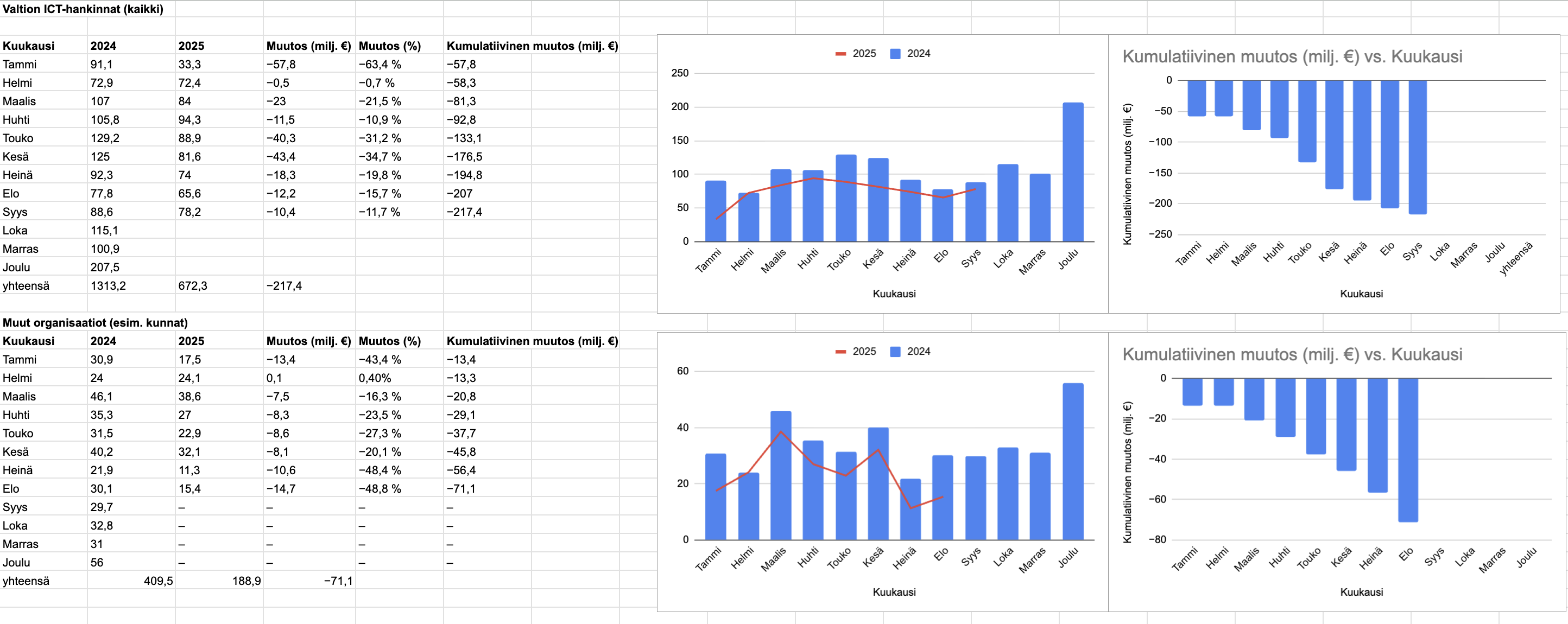 Kun pohdit, miten IT palveluyhtiöiden käy niin ymmärrän huolesi, mutta en jaa niitä. Päinvastoin, uskon että alalla on kultaiset vuodet edessään. Uskaltaisin jopa väittää, että IT palvelusektori ja ylipäänsä IT yhtiöt on viimeinen sektori, joka katoaa. Nämä yhtiöt ovat juuri niitä, jotka mahdollistavat kaikkien muiden matkan teköälyttömästä maailmasta - älylliseen. Jokainen automaatioaalto, tekoälyratkaisu ja digitaalinen infrastruktuuri rakentuu niiden kädenjäljestä. Työmuodot, palvelumallit ja ansaintalogiikat voivat kyllä muuttua, sehän on ihan normaalia, mutta itse toimiala ei katoa. Viittasit mm. Ansaintamalliin → ne elää mielestäni ajassa. Olen itsekin historian aikana myynyt niin lisenssejä, kiinteitä projekteja, tavoitehintaisia projekteja, ylläpitoa, saasia, tuntityötä, ja milloin mitäkin. Mallit on aina päättänyt asiakas, ei toimittaja. Toimittajana hinnoittelu on tehty mallilla, jolla joku haluaa ostaa. Tällä hetkellä monet asiakkaat ostavat tuntipohjaisesti, siihen he ovat oppineet 2010 luvun aikana ja jälkeen. Mallit muuttuu, elämä jatkuu. Olit myös huolissasi siitä insourcaus trendistä, joka on markkinalla ollut viime aikoina - sekin on ihan normaalia ja on kulkenut vuosikymmenet jo aaltoina. Välillä osaamista halutaan sisälle, välillä se halutaan ulkoistaa. Tässä kohtaa oma näkemykseni on, että sisäinen osaaminen tulisi olla vahvempaa kuin mitä se nyt on - koska yhtiöiden digitaalinen maturiteetti on kilpailuetu. Silti elämme, erityisesti Suomessa, markkinassa jossa usein on järkevämpää ostaa tekemistä kuin tehdä työsopimus. Ihmisten palkkaaminen on liian kallista ja työlästä. Kustannukset kannattaa pitää muuttuvina aina kun se on mahdollista ja välttää pitkiä sitovia sopimuksia. Erityisesti jos tarve vaihtelee/ ei ole pysyvä.