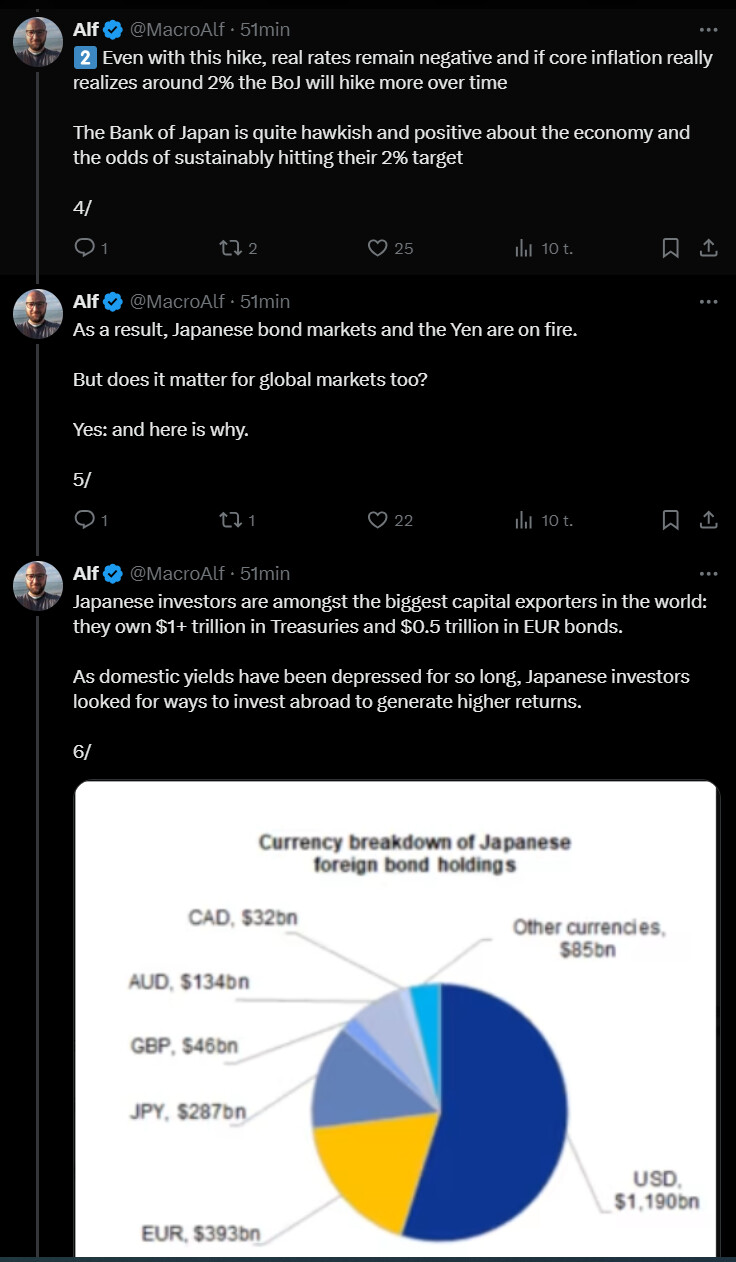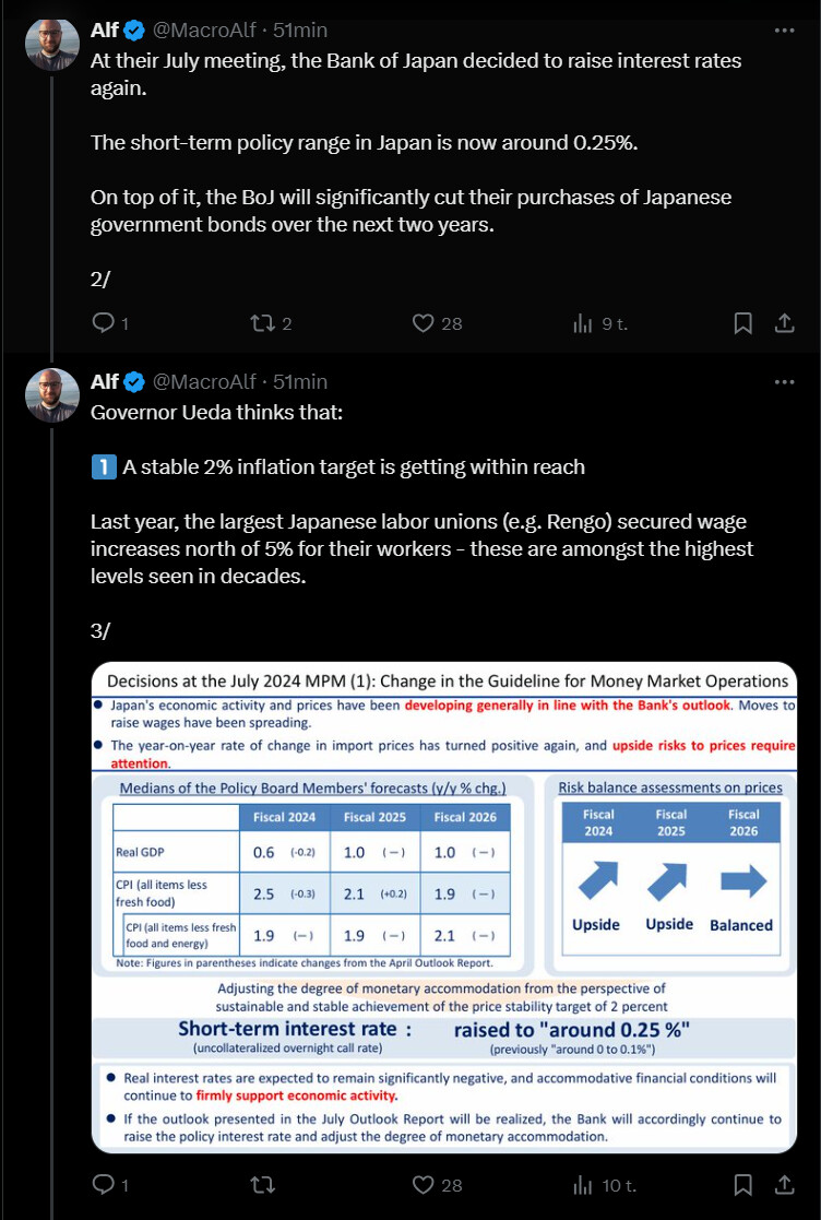Jos et tiennyt: #Japanin Topix laski 6,1 %, eniten sitten vuoden 2016, päättäen kahden päivän 9,2 % laskun (suurin kahden päivän lasku sitten vuoden 2011 tsunamin) Japanin keskuspankin odotettua aikaisemman keskiviikon koronnoston ja pääjohtaja Kazuo Uedan haukkamaisen viestin seurauksena.