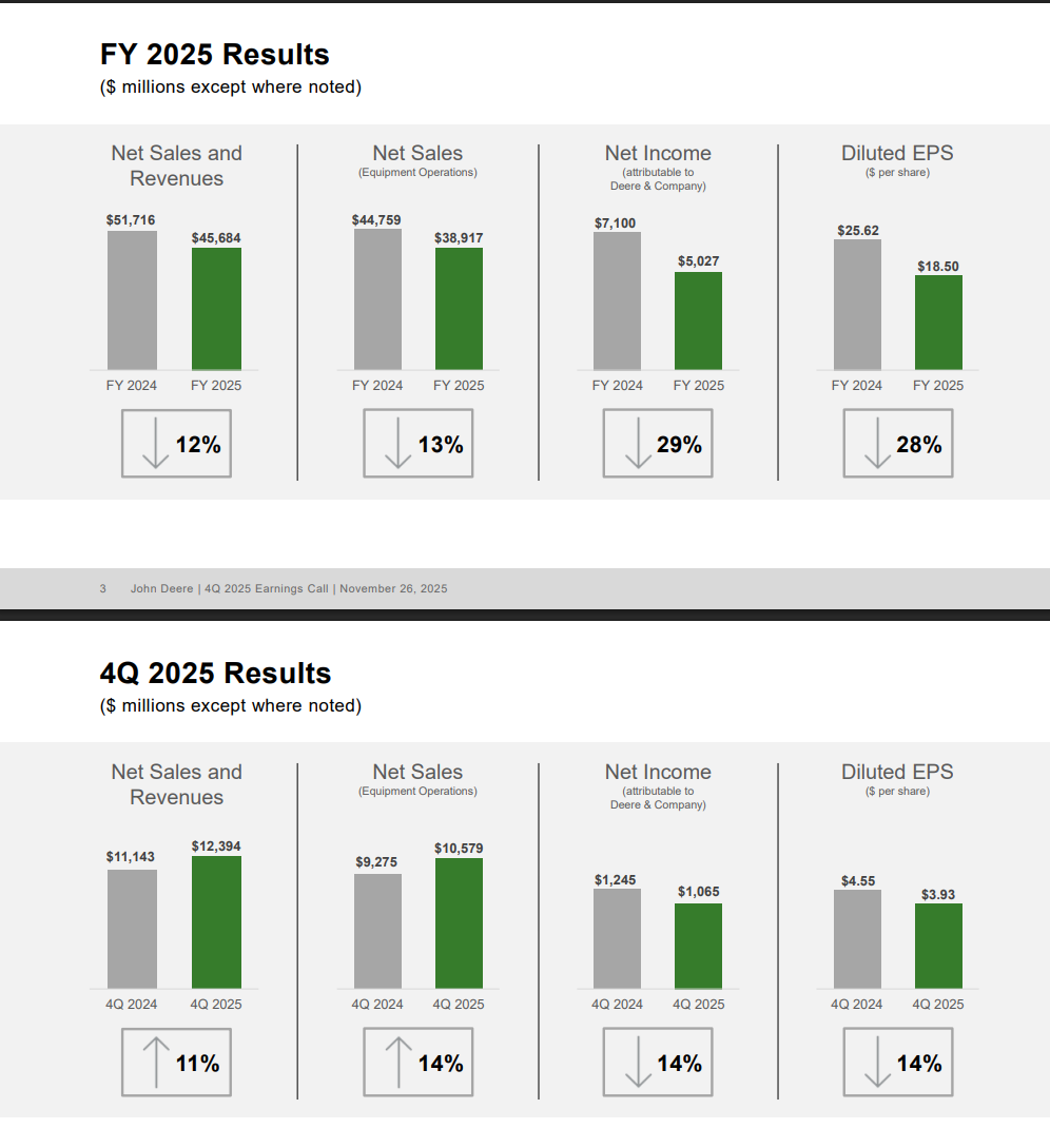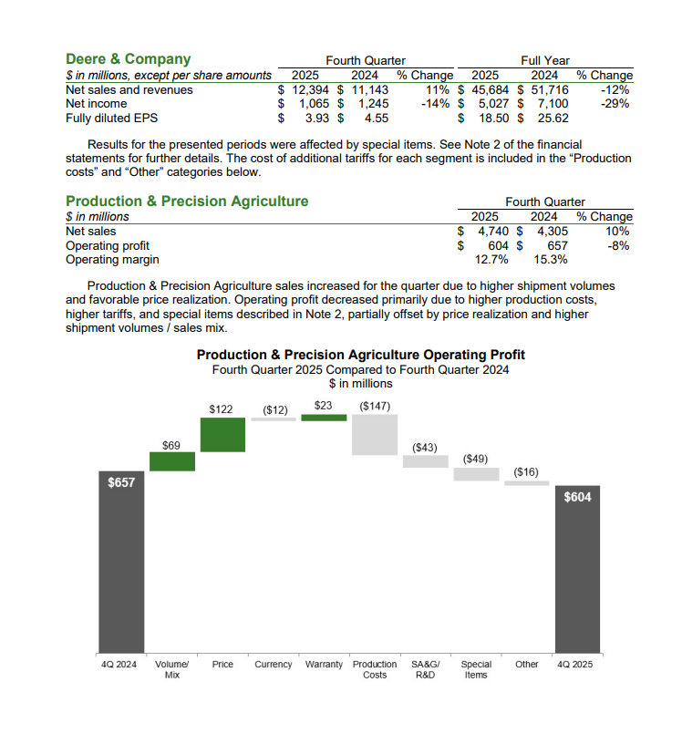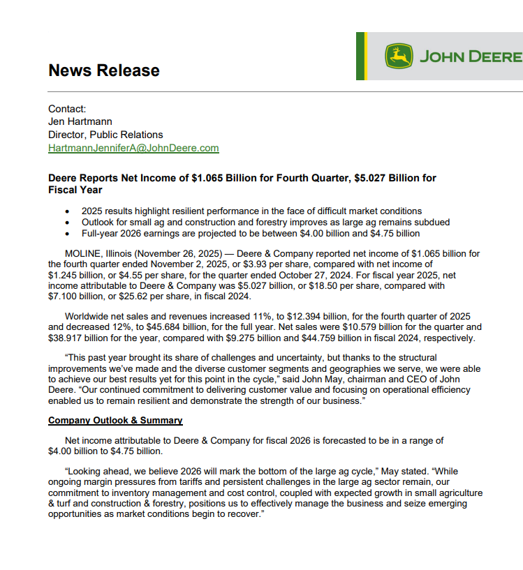John Deere ylitti odotukset liikevaihdossa ja tuloksessa, vaikka nettotulos heikkeni vertailukaudesta.