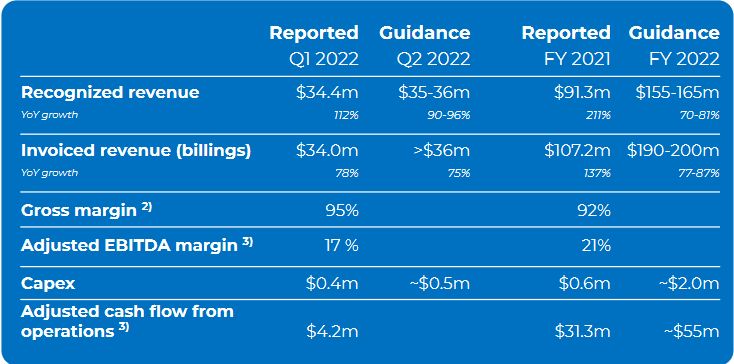 o Invoiced revenue $37.2m, up 81% YoY, Annual Recurring Revenues $142.5m up 90% YoY