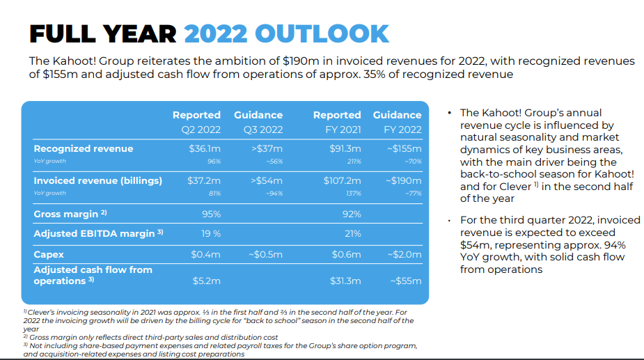 OSLO, 11 August 2022 - Kahoot! ASA, (KAHOT) today announced financial results
