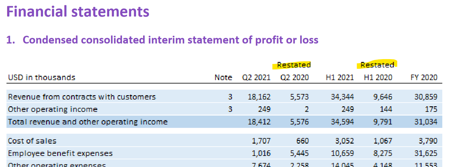 Niin eli firma takautuvasti muuttaa talouslukujaan. Tapahtunut moneen otteeseen viime vuosien aikana, niin että vertailukelpoista aikajanaa on mahdoton tehdä. Tekee mallinnuksesta rasittavaa. Tossa nyt esim kuva Q2/21 rapsasta, mutta näitä on lukuisia. Jos vertaat Q4/21 rapsan 2021 employee expenses, ja annual reportin 2021 employee expenses, huomaat että ne on eri. Vaikuttaa kannattavuuteen, ja kassavirtaan (mikä erikoista).