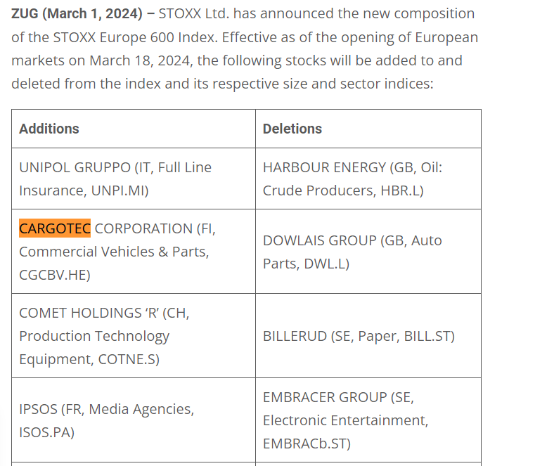 Sisäpiiritieto: Cargotecin hallitus on hyväksynyt jakautumissuunnitelman Kalmarin eriyttämiseksi uuteen pörssilistattavaan yhtiöön