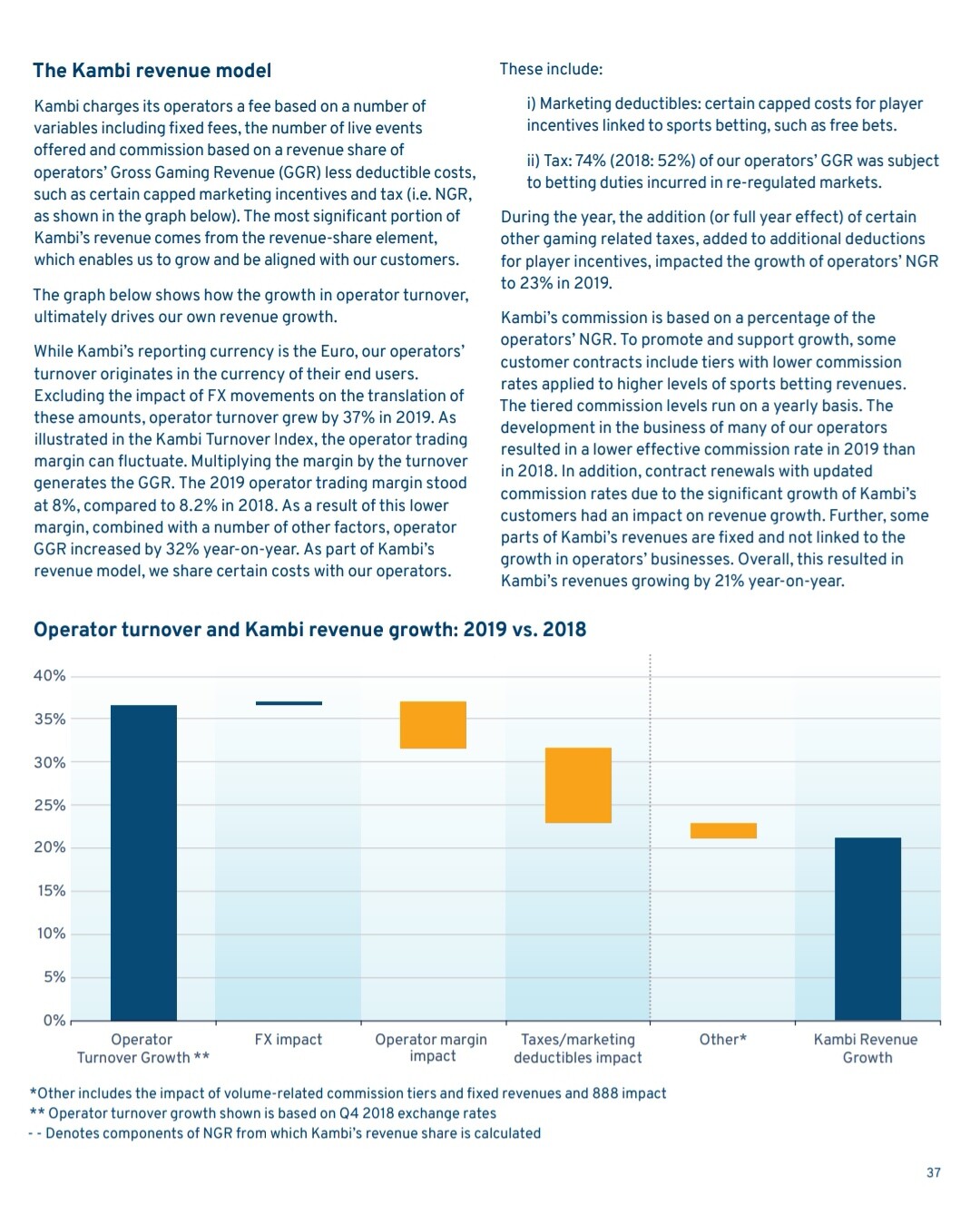 Miten kambin skaakautuvuus ja liiketoiminta toimii?Ovat auttaneet nyt monia operaattoreita uusille markkinoille. Mutta laskuttavatko he kuukausittaisen maksun tuotteesta vai saavatko tietyn prosentin pelatusta/voitetusta rahasta. Kambin kilpailija Gan Ltd tarjoaa casino alustoja ja nyt myös vedonlyönti alustaa kun ostivat coolbetin jolla oma vedonlyönti alusta. He saavat tietyn prosentin casinon voitoista joten heillä ei ole ylärajaa liikevaihdolla, mitä pidän fiksuna liikkeenä.