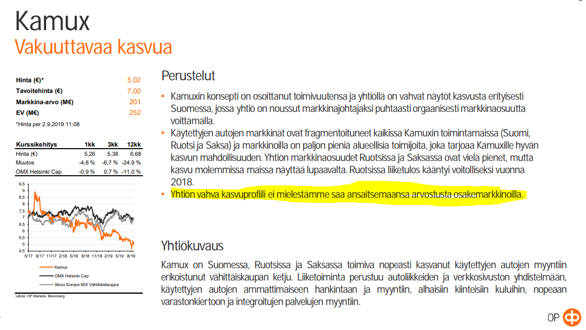 Samaan aikaan kamux löytyy OP analyytikoiden top-5 ostosuosotuksista, target 7€.