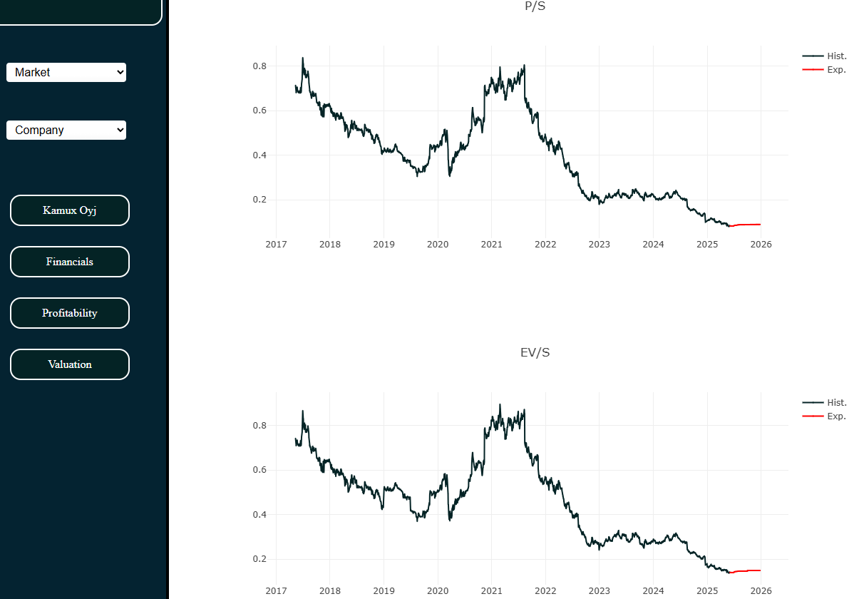 Aika ikävän näköistä menoa Kamuxilla ja Wetterillä, kun katsoo arvostustasoa P/S tai EV/S tunnusluvulla. Alkaa olemaan aika hyvä nousupotentiaali, jos kannattavuus/odotukset saataisiin takaisin muutaman vuoden takaisille tasoille.