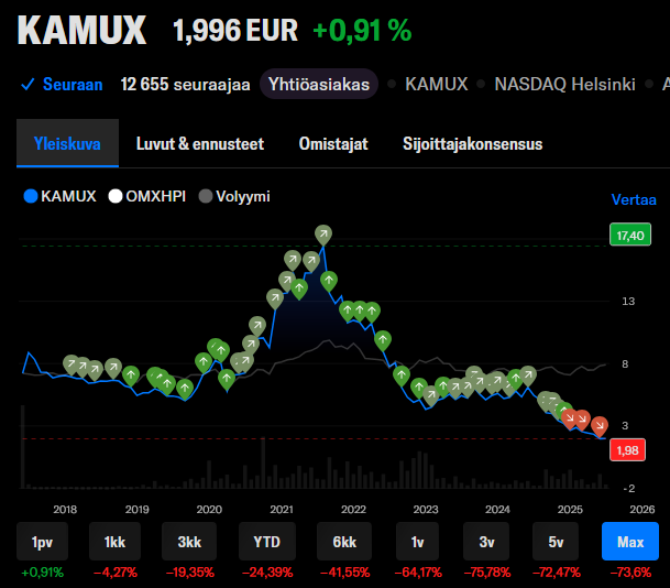 Kirjaimellisesti 17 euron kurssilla oltiin positiivisia ja 2 euron kurssin alla ollaan negatiivisia