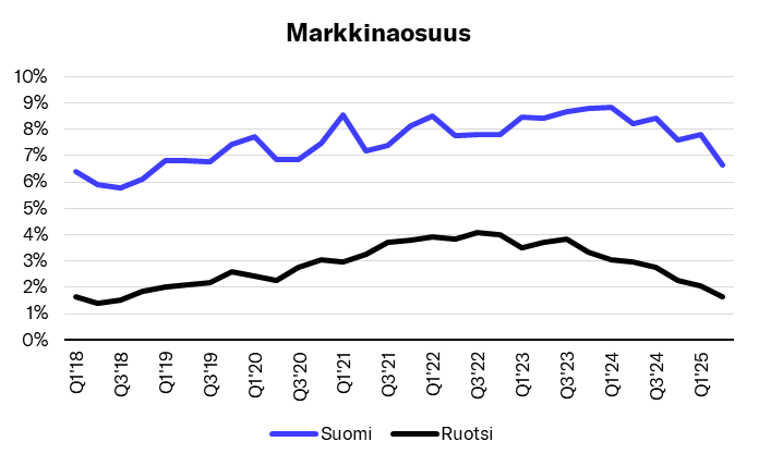 Suomenkin markkinaosuus kyykkää kovaa vauhtia.