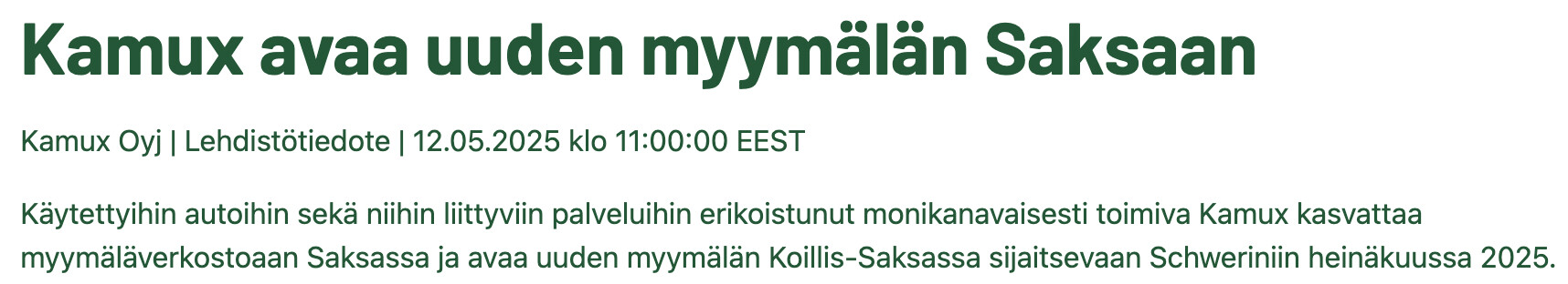 Ei ole montaa päivää kulunut, kun Kamux avasi viimeisimmän uuden myymälän Saksaan, joten se on vähän ristiriidassa sen suhteen, että olisivat ajamassa Saksan toimintoja alas…