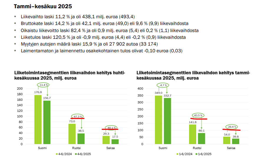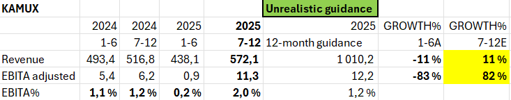 Loppuvuodelle riittää haasteita. Liikevaihto-ohjeistusta ei ole, oletan, että sama kuin 2024. EBITA oikaistu ohjeistus on, että hieman parempi kuin viime vuonna, oletan 5% kasvua.