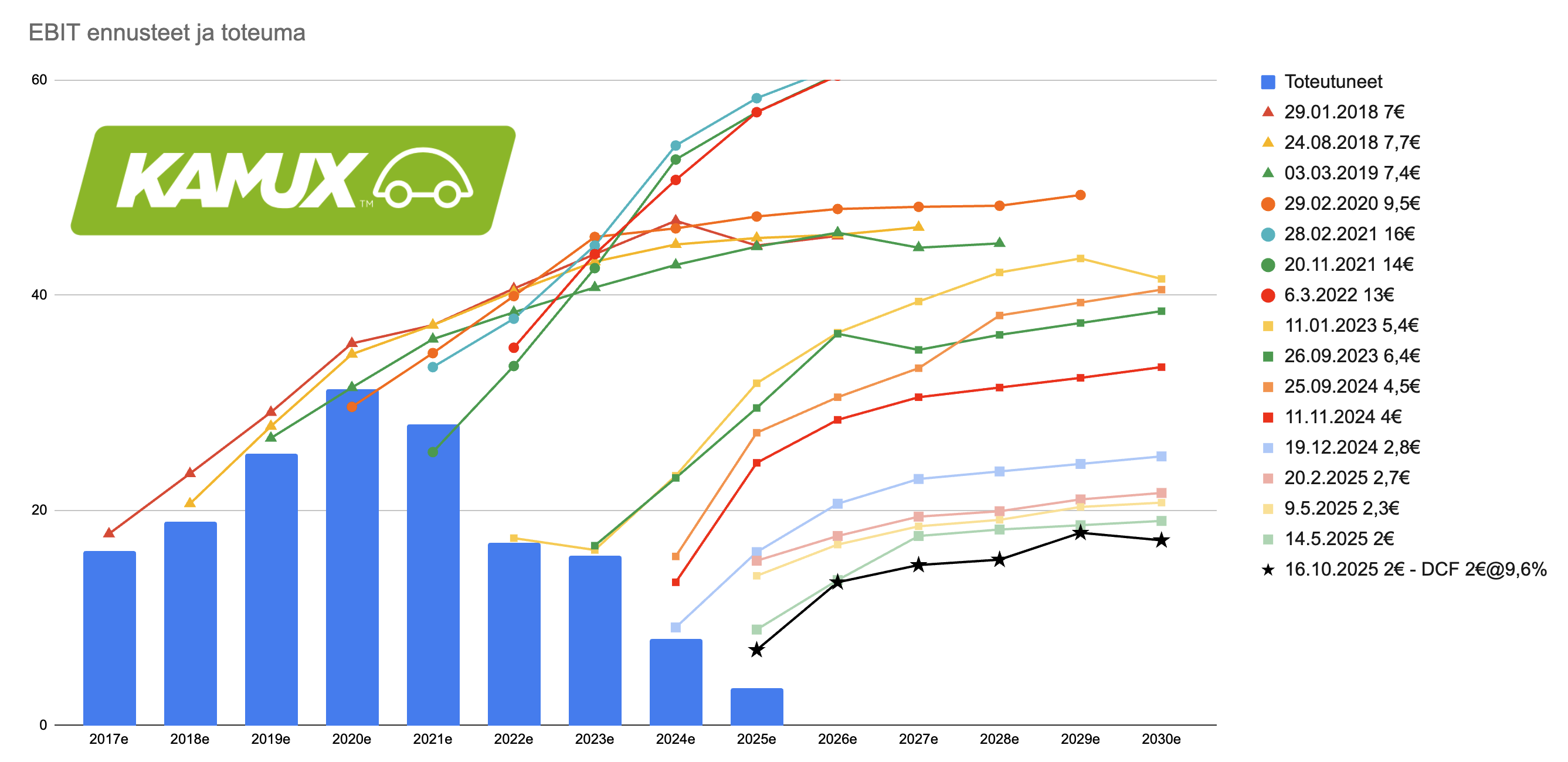 Kamux raportoi Q3-tuloksensa tiistaiaamuna. Yhtiö antoi lokakuun puolivälissä tulosvaroituksen, jossa se laski koko vuoden oik. liikevoitto-ohjeistustaan sekä kertoi päälukuja Q3-tuloksesta. Samassa yhteydessä yhtiö ilmoitti toimitusjohtajan vaihtumisesta, kun yhtiön perustaja ja 2023 kesään asti sitä johtanut Juha Kalliokoski korvasi Tapio Pajuharjun. Lukujen puolesta raportti tarjoaa lähinnä tarkempia yksityiskohtia, mutta isoon kuvaan ei pitäisi tulla uutta tietoa. Huomio onkin lähinnä siinä, onko yhtiön johtoon palanneella Kalliokoskella jo tässä vaiheessa uusia linjauksia yhtiön suunnan kääntämiseen.
