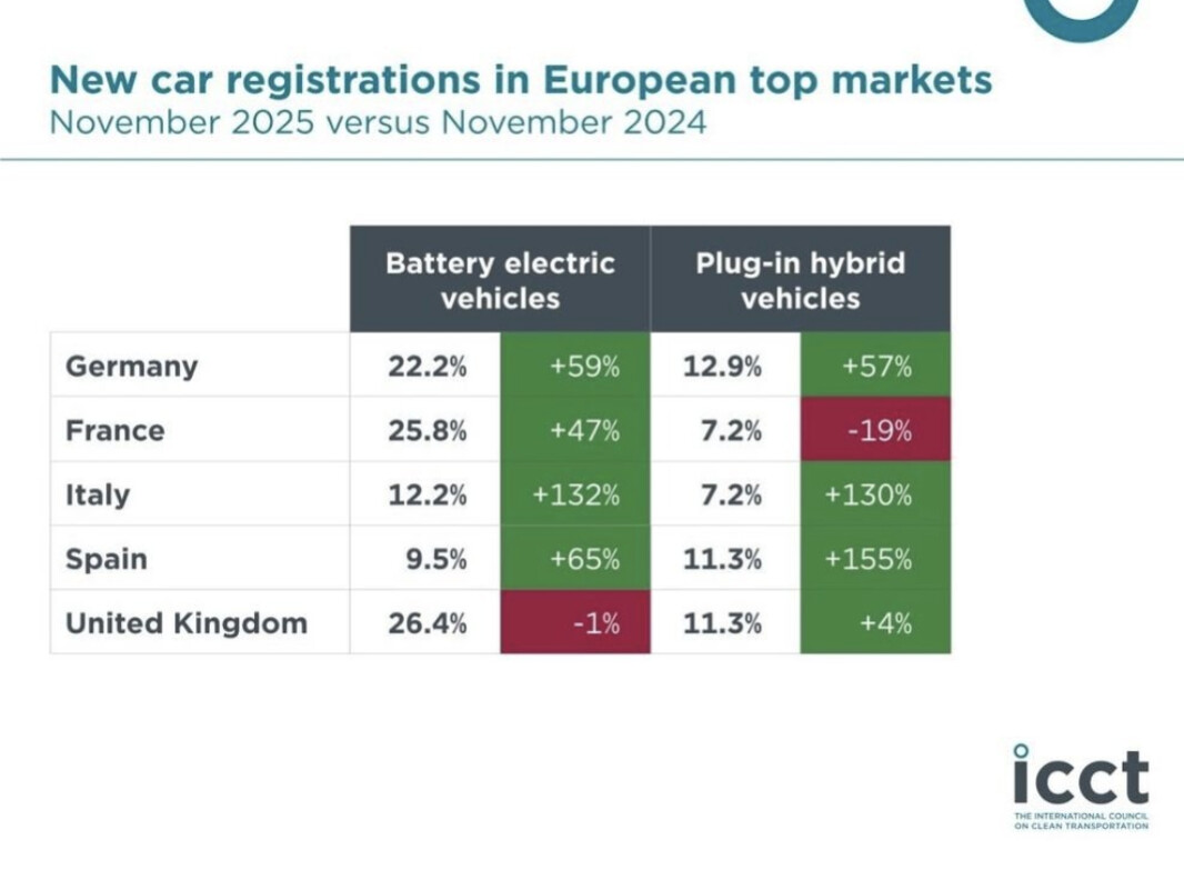 In the first eight months of 2025, 1,132,603 new battery-electric cars were registered, capturing 15.8% of the EU market share. Three of the four largest markets in the EU, accounting for 62% of battery-electric car registrations saw gains: Germany (+39.2%), Belgium (+14.4%), and the Netherlands (+5.1%). This contrasted with France, which saw a decline of 2%, despite a positive 29.3% YOY gain in August 2025.