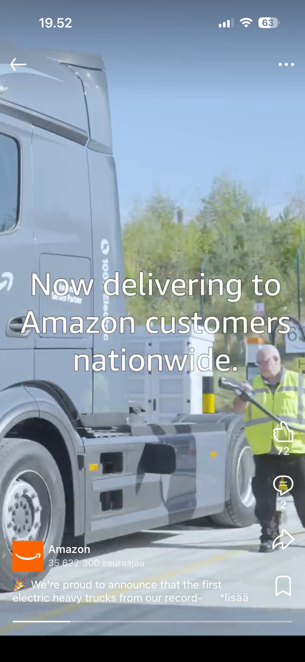 Skärmdump från Amazons LinkedIn-inlägg idag, med välbekanta Satelliter laddar Bezossons ellastbilar… Många Kempower-anställda har gillat det inlägget. Amazon har inte gett Kempower tillstånd att använda dem som referens? Hoppas att denna affär har blivit större.