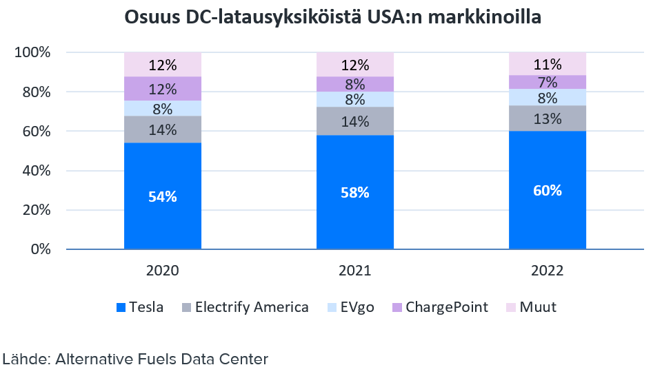 Compared to Tesla, another difference with Kempower is that with a Kempower charger, for example, the S Group can sell power to customers. With Tesla chargers, it is always Tesla selling it.