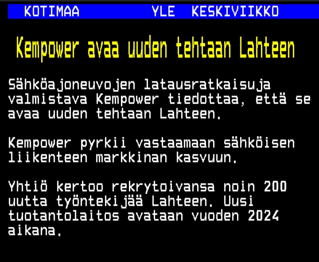 - Kempower estimates it will recruit approximately 200 new employees in Lahti during 2024–2025.