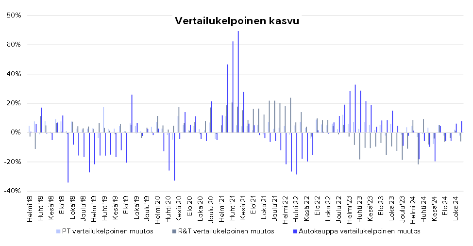 Autokauppa hämmentävän vahvaa, mutta sillä ei pitkälle pötkitä. Ruokakaupan puolella kehitys on ikävämpää.