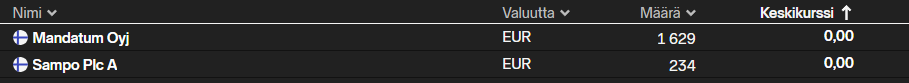 Nyt kun verottaja on vahvistanut Sammon ja Mandatumin hankintamenon jakosuhteen niin päivitin hankintahinnat.