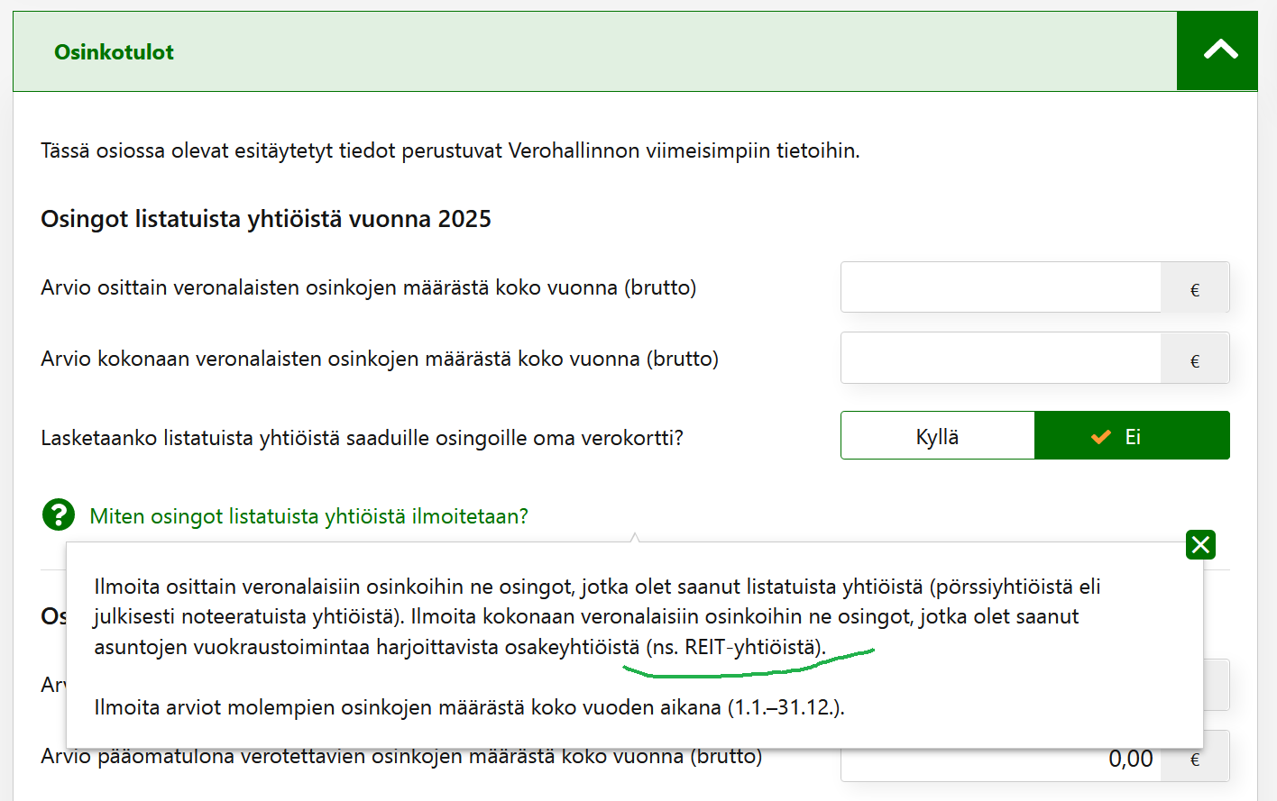 Täyttelin tänään verokorttia alkavalle vuodelle ja siinä oli uusi kenttä nimenomaan REIT-osingoille, erillisenä muista osinkotuloista. Liittynee tähän Reclassification-kuvioon?