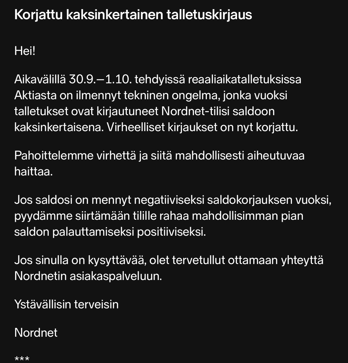 Jeg har nu forsøgt at bruge Nordeas netbanks sektion for opsparing og investeringer, kun for at opdage, at den er fuldstændig ubrugelig. Det er ligefrem forvirrende at opdage, at en stor banks brugerflade er på niveau med et skoleprojekt. Er der blevet oplyst en grund til nedlæggelsen af Investor? Det føles mærkeligt med en så mærkbar forringelse af systemet.