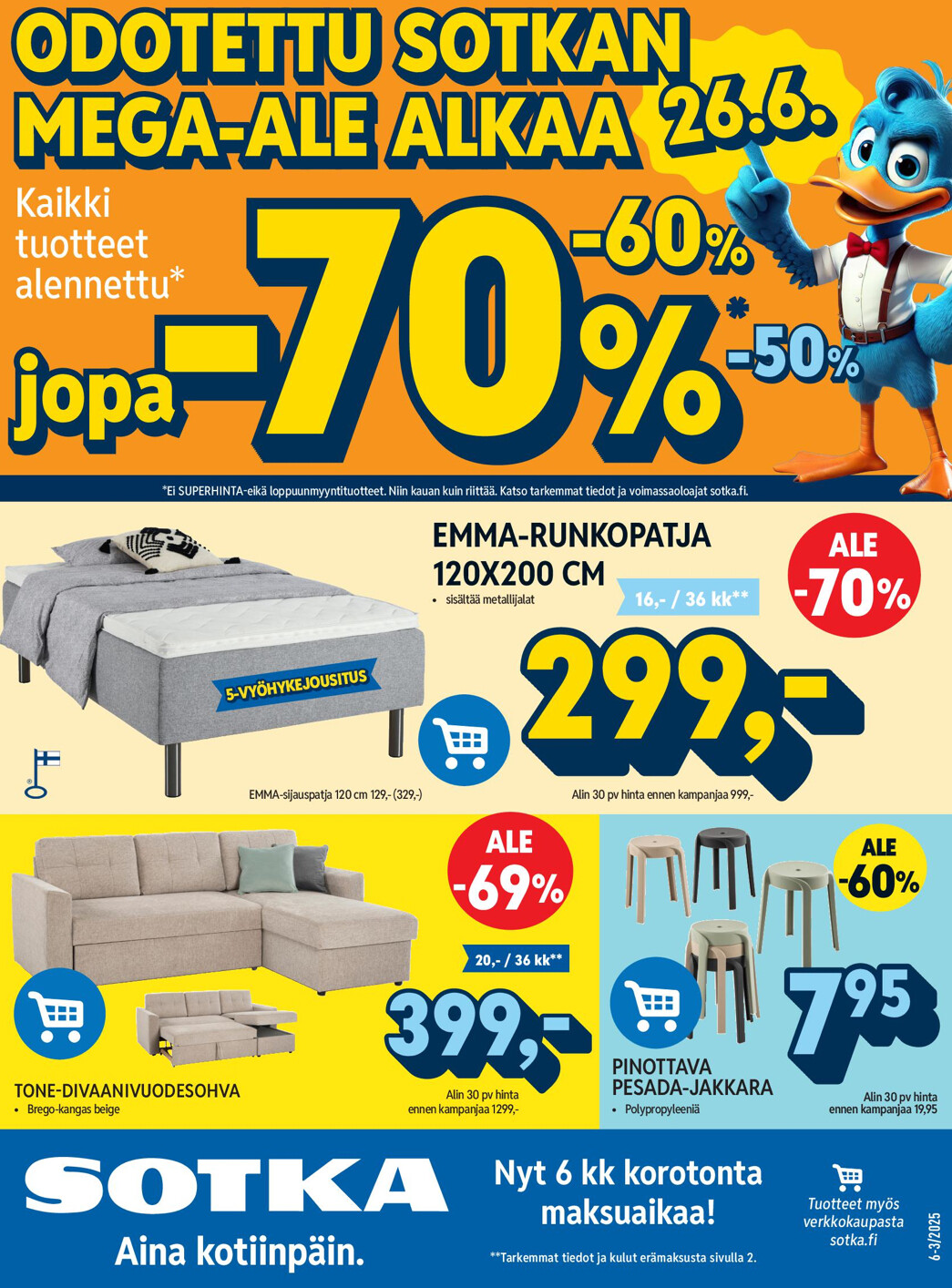 Ilmeisimmin kummassakin lafkassa ollaan aika rankasti kutistamassa mallistovalikoimaa ja esim. kuvissa olevaa Emma-patjaa on loppuunmyyty antaumuksella kesäkuun alusta. Oli näitä kesän loppuunmyyntituotteita alunperin tullut isot läjät kuulema joka puolelle, mutta juuri kuumimmassa sesongissa myydään ei oota, tehtaat on/oli lomalla ja tilauksia näistä etusivutuotteista ei ole tehty lisää ennakkoon menekkiä arvioiden. Tuo toinen etusivun houkutustuote oli kuulema jo loppu ennen mega-alen alkua…
