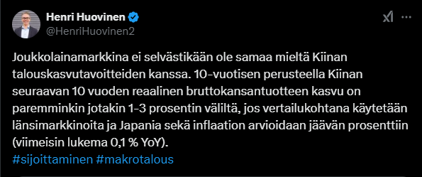 Tässä on Henri Huovisen tviitti Kiinaan talouskasvutavoitteisiin liittyen.