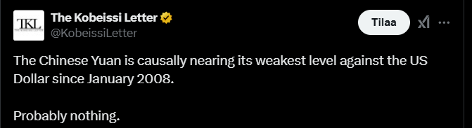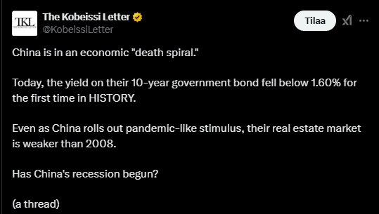 Tässä alla olevassa tviitissä pohditaan Kiinan tämän hetkistä menoa ja tulevaisuutta. ![]()