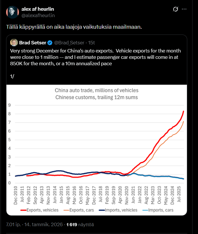This was a good podcast; Nordea’s Chief Economist Tuuli Koivu was a guest on Sijoituskästi talking about China.