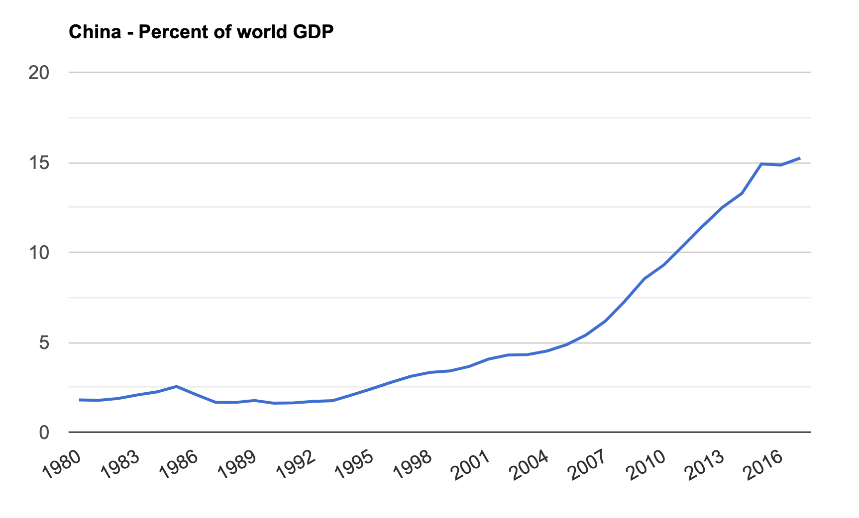 Kinas økonomi er på 40 år steget fra et lille, af kulturrevolutionen hærget eksperiment med agrarisk socialisme til verdens næststørste økonomi efter USA. Kina kaldes ikke uden grund for verdens fabrik og er en betydelig kilde til efterspørgsel efter råvarer. Også teknologisk har landet udviklet sig, og nogle førende teknologivirksomheder, som Tencent og Alibaba, udgør rygraden i landets teknologiske spring.