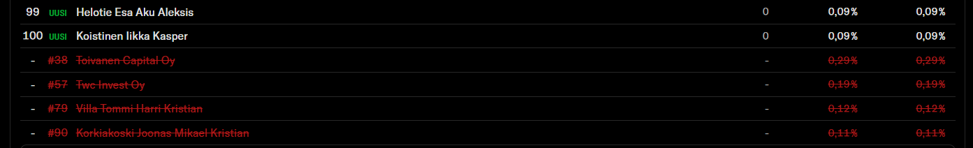 Den här nya vyn för ägare, som åtminstone är ny för mig, är verkligen fantastisk. Man kan enkelt se vilka som har minskat, vilka som har ökat, och vilka som helt har tagits bort från listan. Jag hoppas att den också uppdateras snabbt.