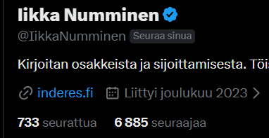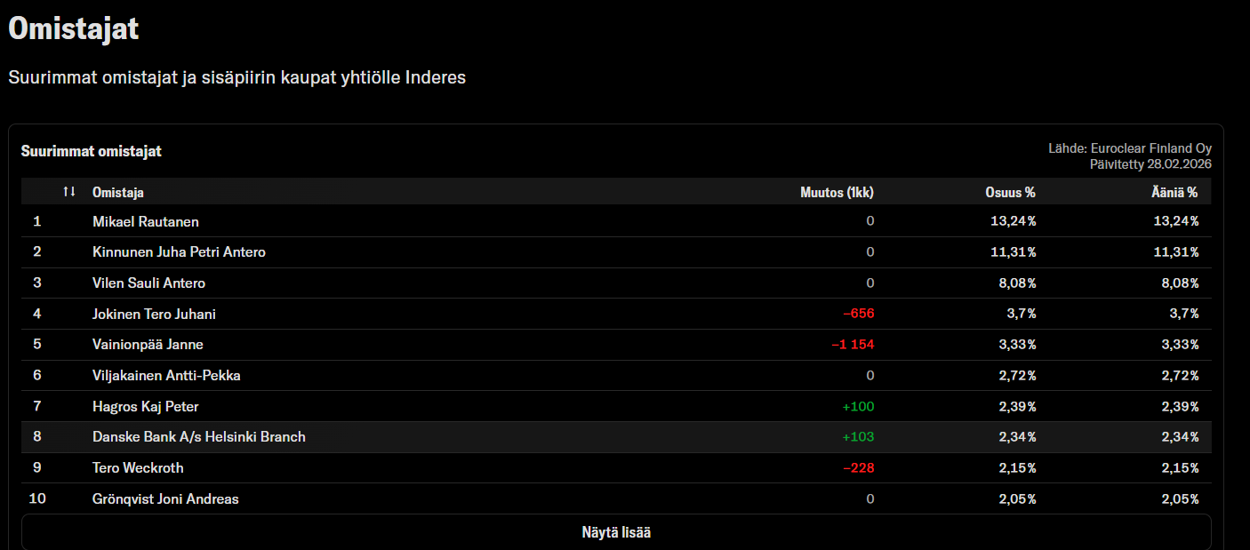 Engagemanget inom ramen för hans roll för att utveckla Inderes och tjäna vår Gemenskap syns tydligt. Jag uppskattar det och lyfter på hatten högt – fortsätt på samma sätt! ![]()