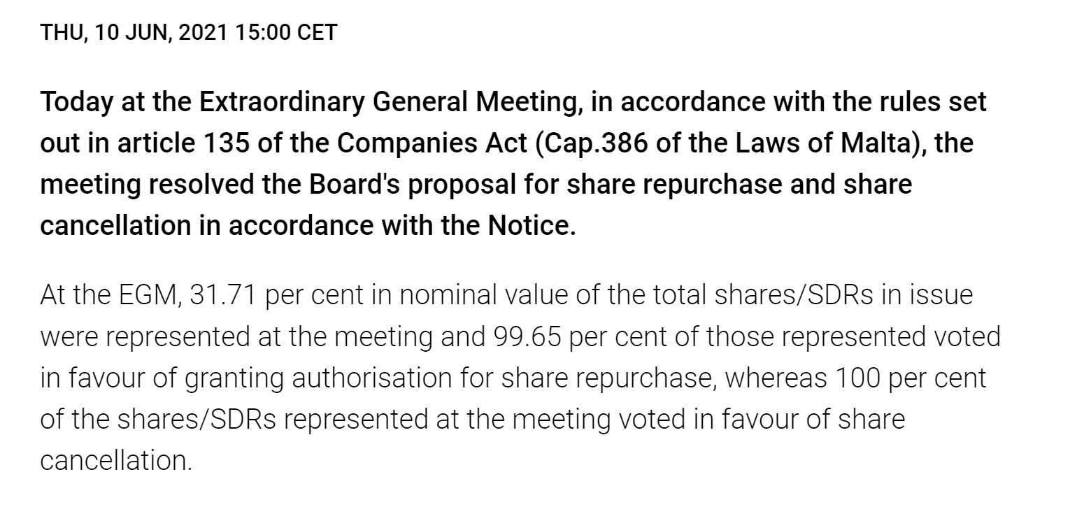 Niin eikö tuossa kesäkuun kymmenennen viestissä kerrota, että 31.71% osakekannasta oli edustettuna EGM:ssä?